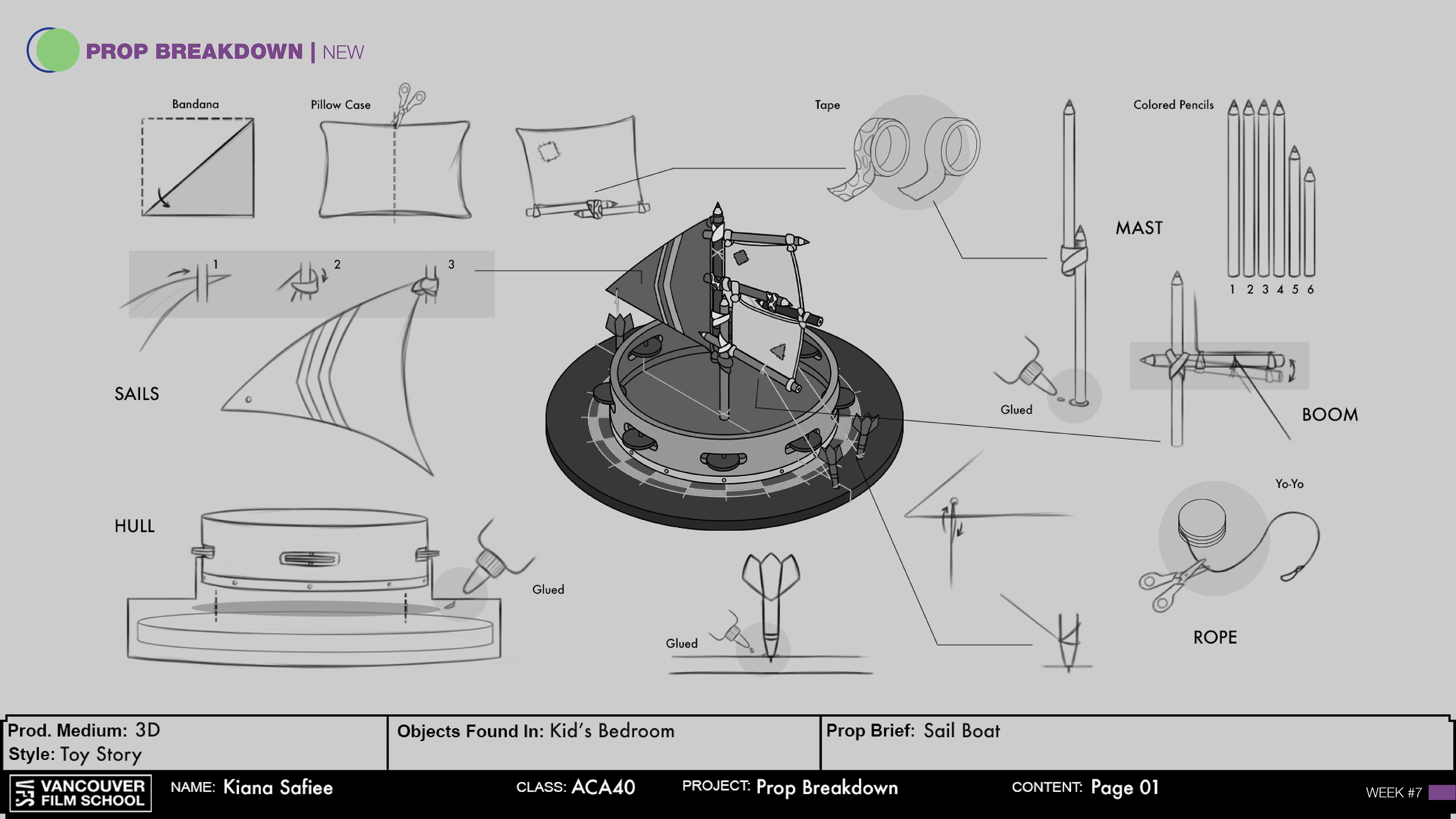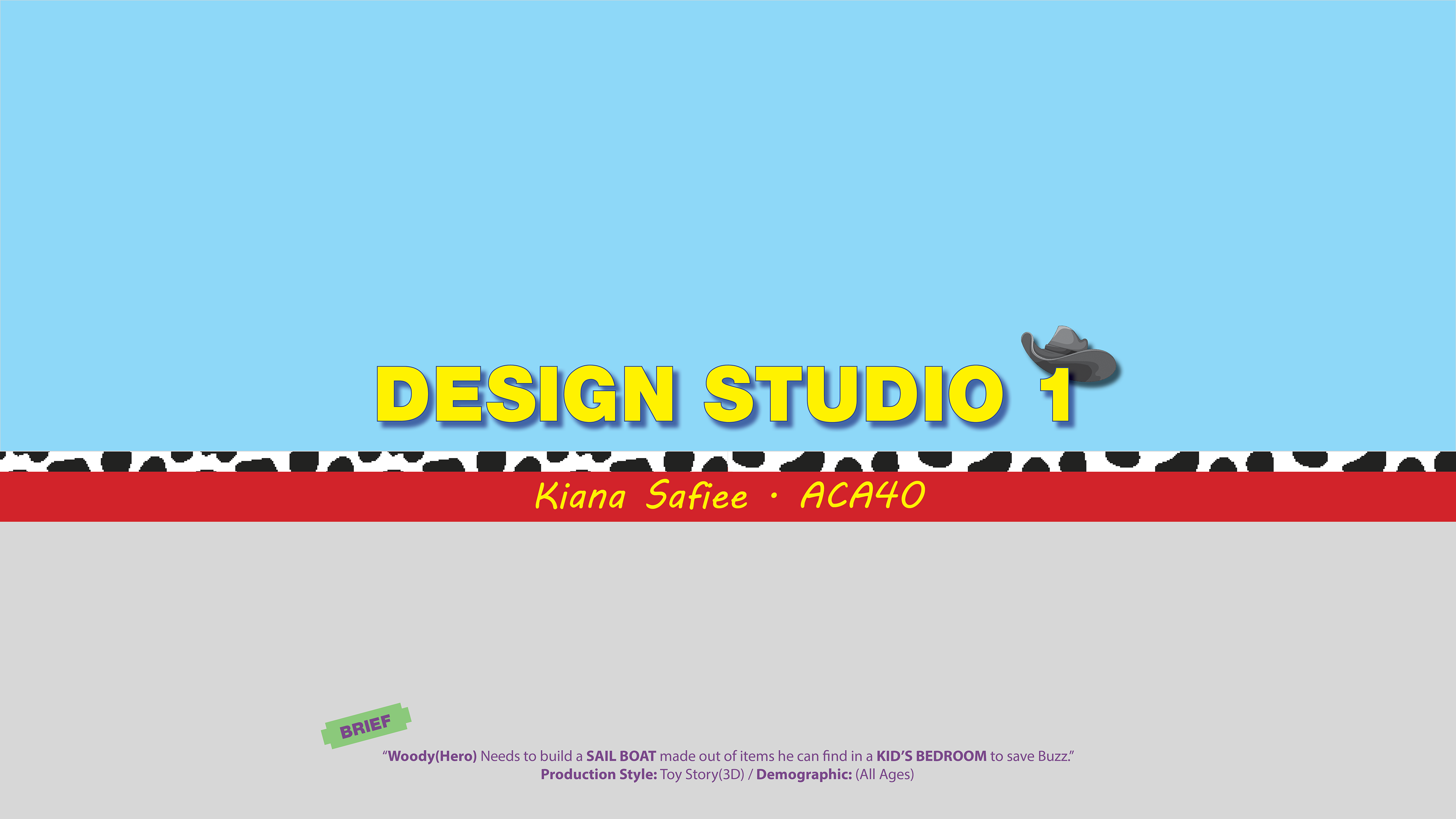 Brief: "Woody(Hero) Needs to build a SAIL BOAT made out of items he can find in a KID'S BEDROOM to save Buzz."